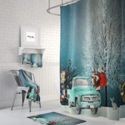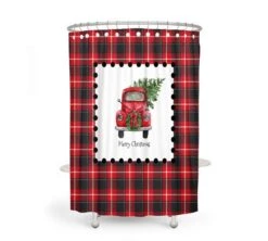 Christmas Shower Curtain Optional Set And Options Vintage Camper Red Truck – Bluefink