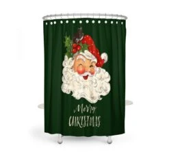 Vintage Santa Shower Curtain, Holiday Shower Curtain, Christmas Bathroom Decor – Bluefink